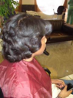 Ashley Nicole is a regular client and in her case the breakage was gradual. It started in the back left corner of her head and then began to spread. She decided to get a haircut and start over. The cut wasn't quite what she expected, so in turn she decided to get extensions to allow her hair to grow back in. So she came and I treated her hair and then gave her sew in extensions. Every 3 months for a year she came and I would give her a treatment, then a trim and sew in her extensions. After a year she has beautiful, natural, healthy hair.