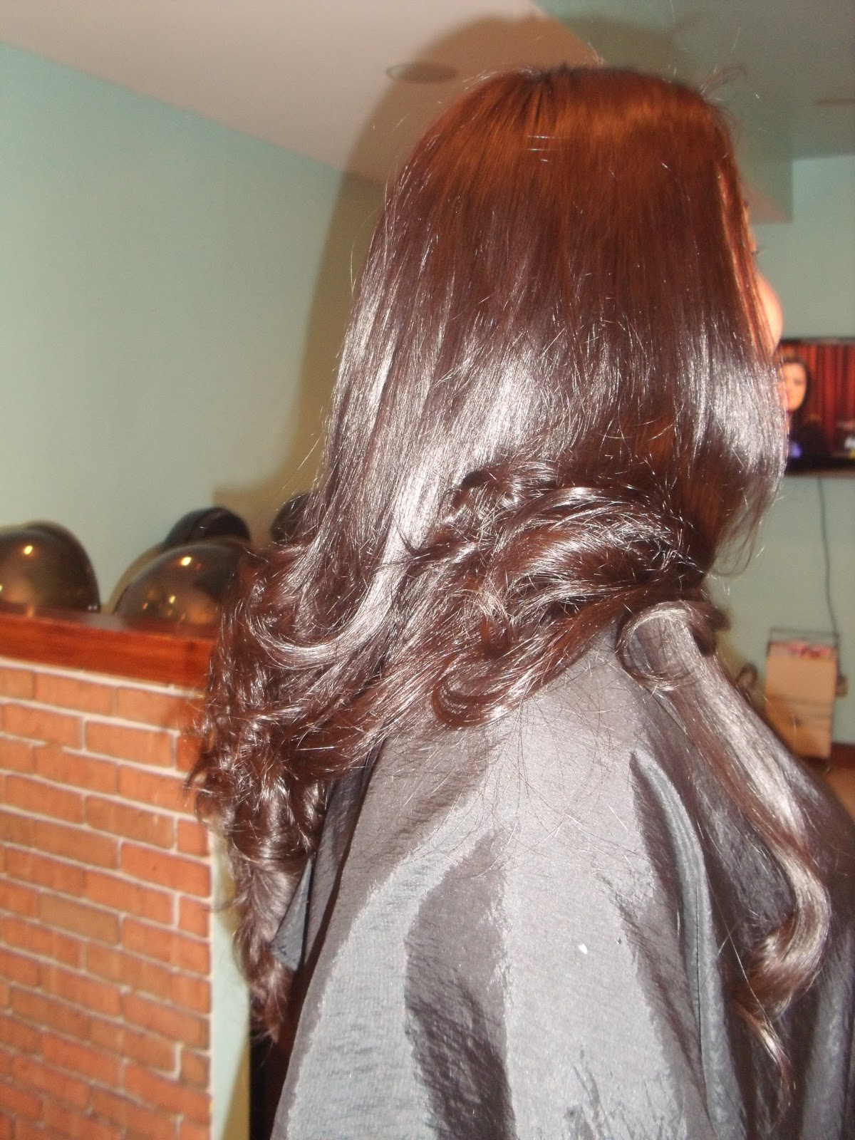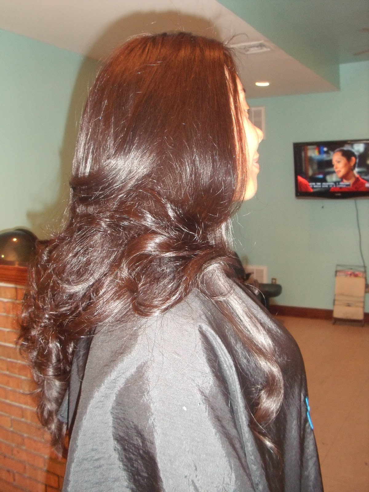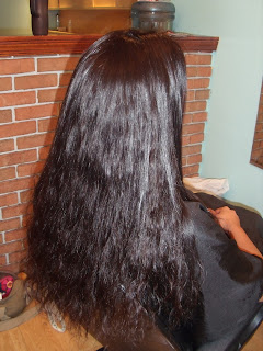 Last Saturday I had an extension virgin. She contacted me months ago, eager to get a full-head of extensions. She sent a picture of herself and told me she wanted her hair like Kim Kardashian's. The "Kim" is a look that many people desire. Her hair always looks amazing. I have tried to replicate this look with my own hair. When I wear extensions, I like to have versatility. I want to wear it straight, curly, and wavy. Many celebs wear extensions, it's convenient and versatile. A full head of extensions are great if you are working out daily or for older women who are going through the "change". It can be maintained on your own at home, however monthly maintenance visits to the salon are recommended.