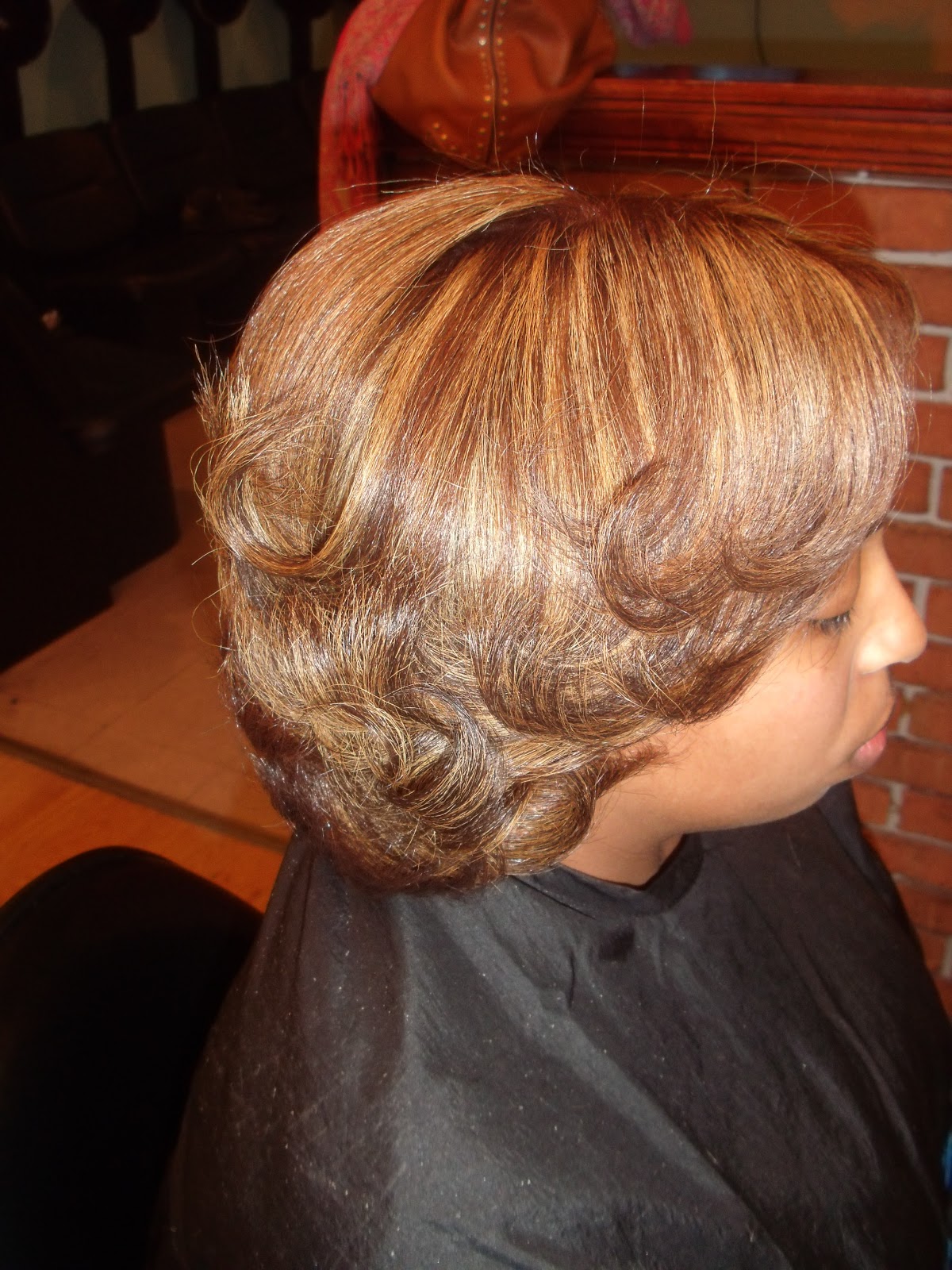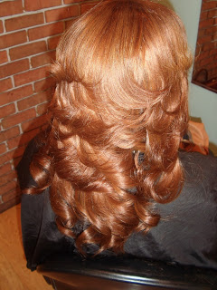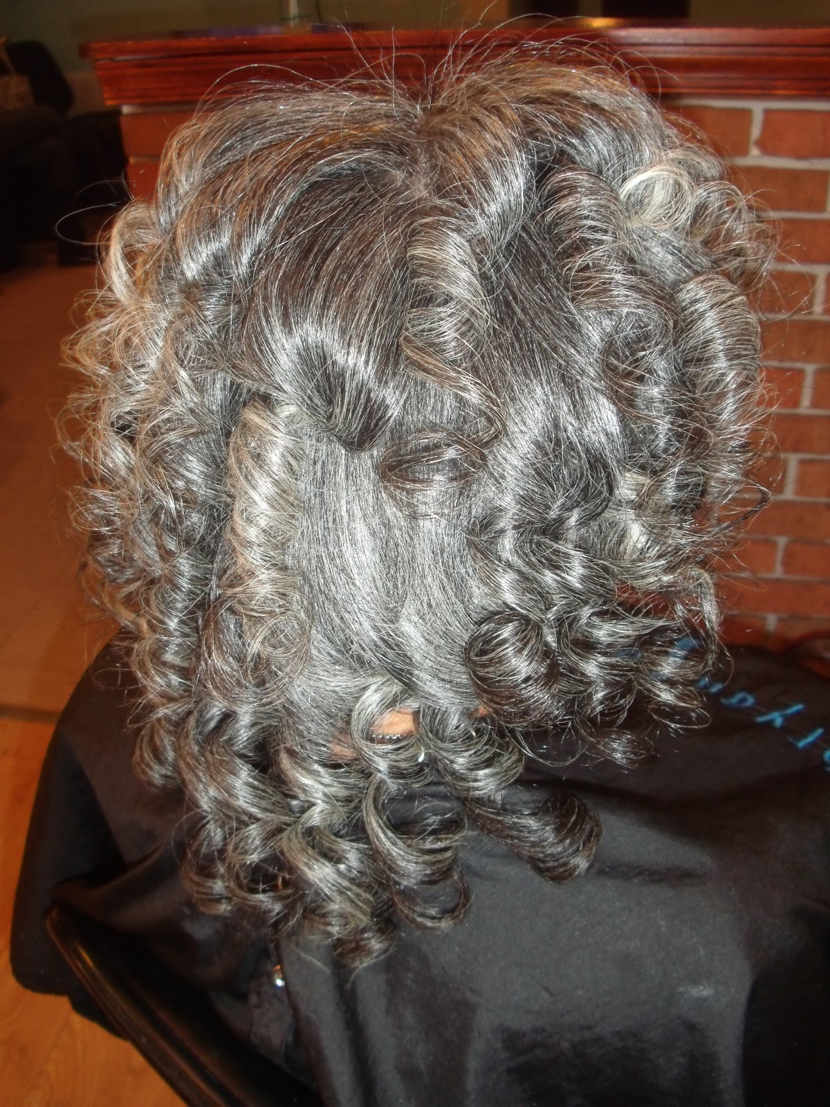 This client keeps these curls for 3 weeks. She pin-curls her hair at night, and puts a bonnet.