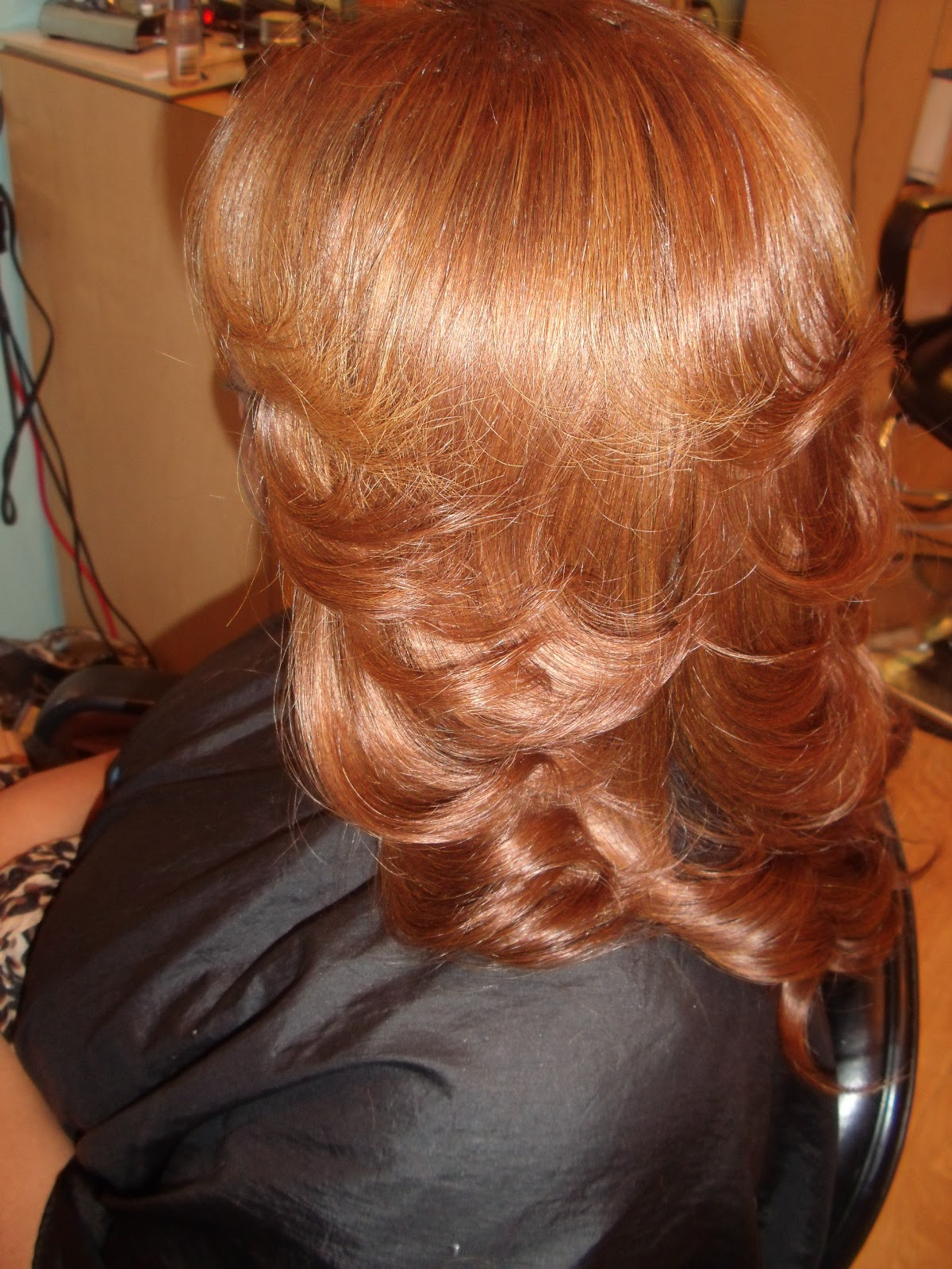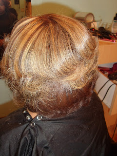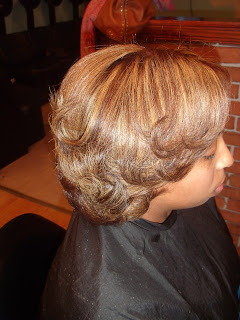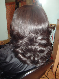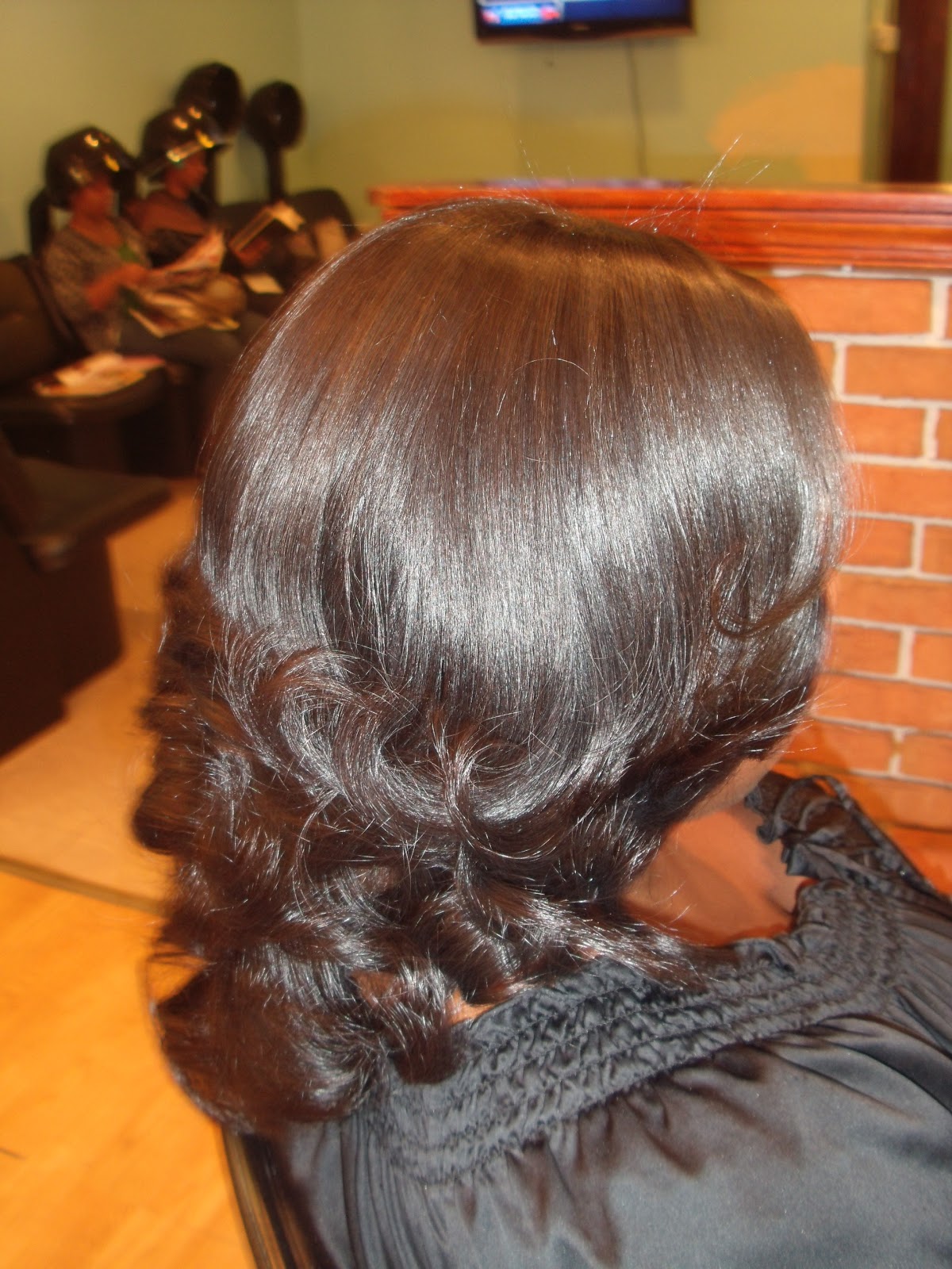 Client- Previously installed partial sew-in extensions, shampooed/conditioned, pressed (natural hair), ceramic curled