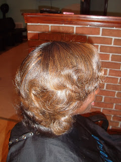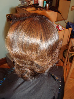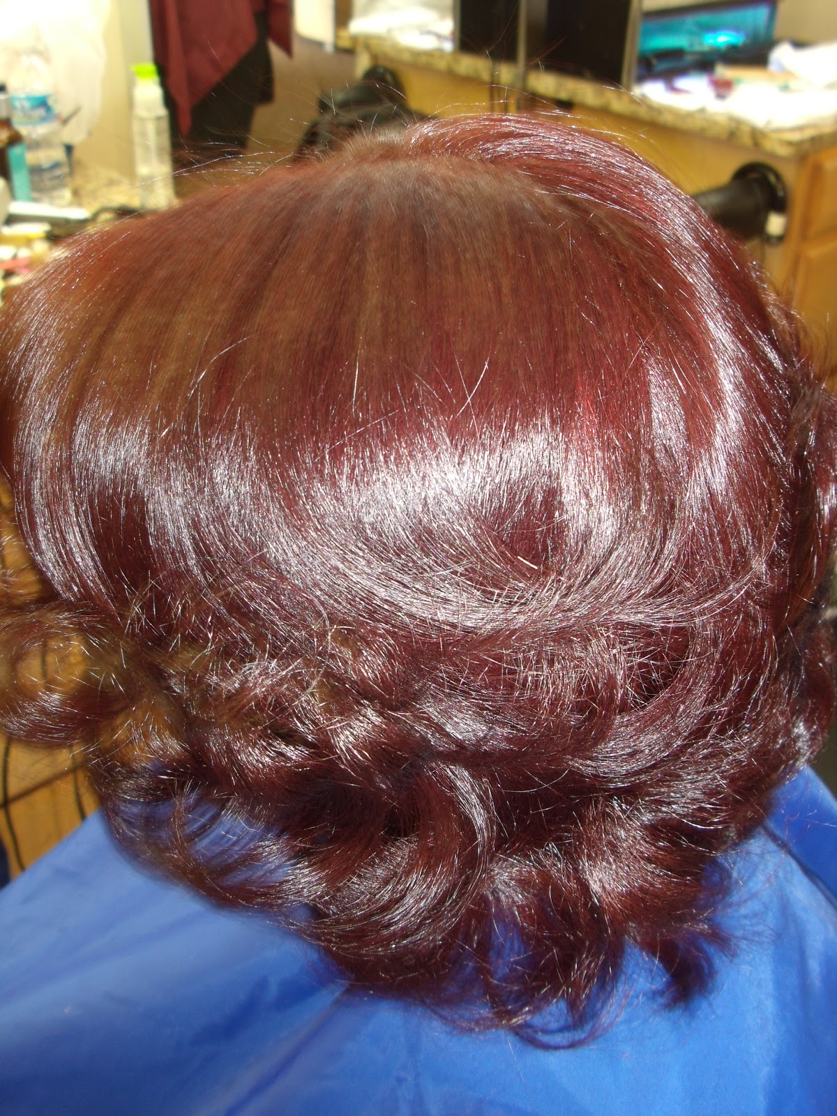 Look #1- Natural hair, color re-touch, color revision, trim, pressed, and ceramic curled