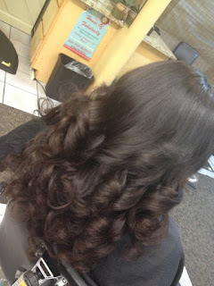 Partial Sew-in Extensions, Brazilian extensions (www.ihearthaircrush.com), cut, ceramic curled, and styled