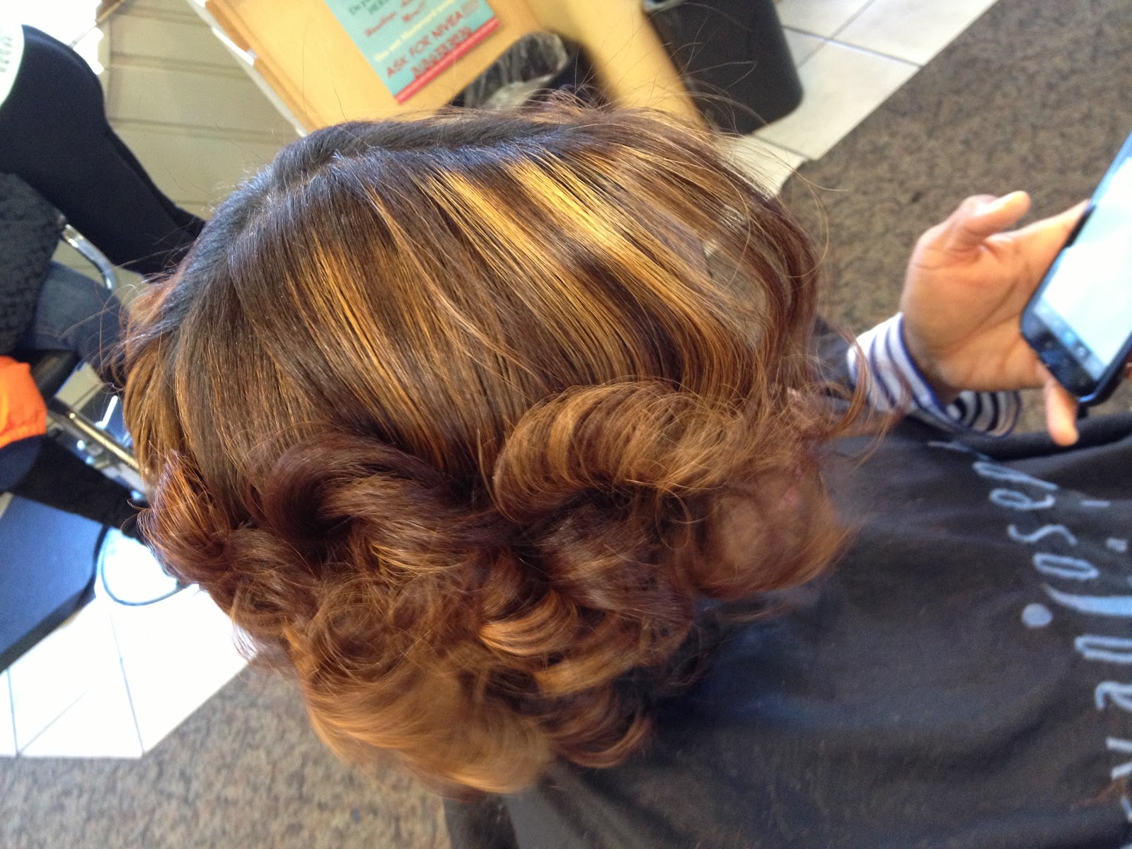 Natural Hair, Highlights and base change, Pressed and ceramic curled