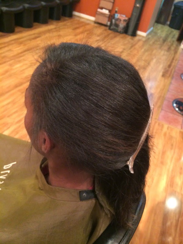 Client is relaxed. Hair was relaxed a week prior to micro bead application. Extensions are from Wagmans.