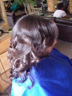 Bride 2- Partial sew-in extensions, soft up-do, pressed and curled